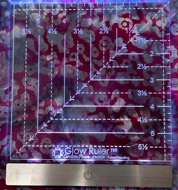 The Carolina Moore Glow Ruler is unlike anything you’ve seen before! It brings light right where you need it – by making the lines of your ruler shine! It works great for both light and dark fabrics and is designed to make cutting fabric easier. The Carolina Moore Glow Ruler has a built-in battery that is rechargeable with a USB-C cable (included). Simply press the power button on the panel to light up the lines on your ruler. The Carolina Moore Glow Ruler can also be used when the light is off. Measurements on this ruler go up to 6" x 6".