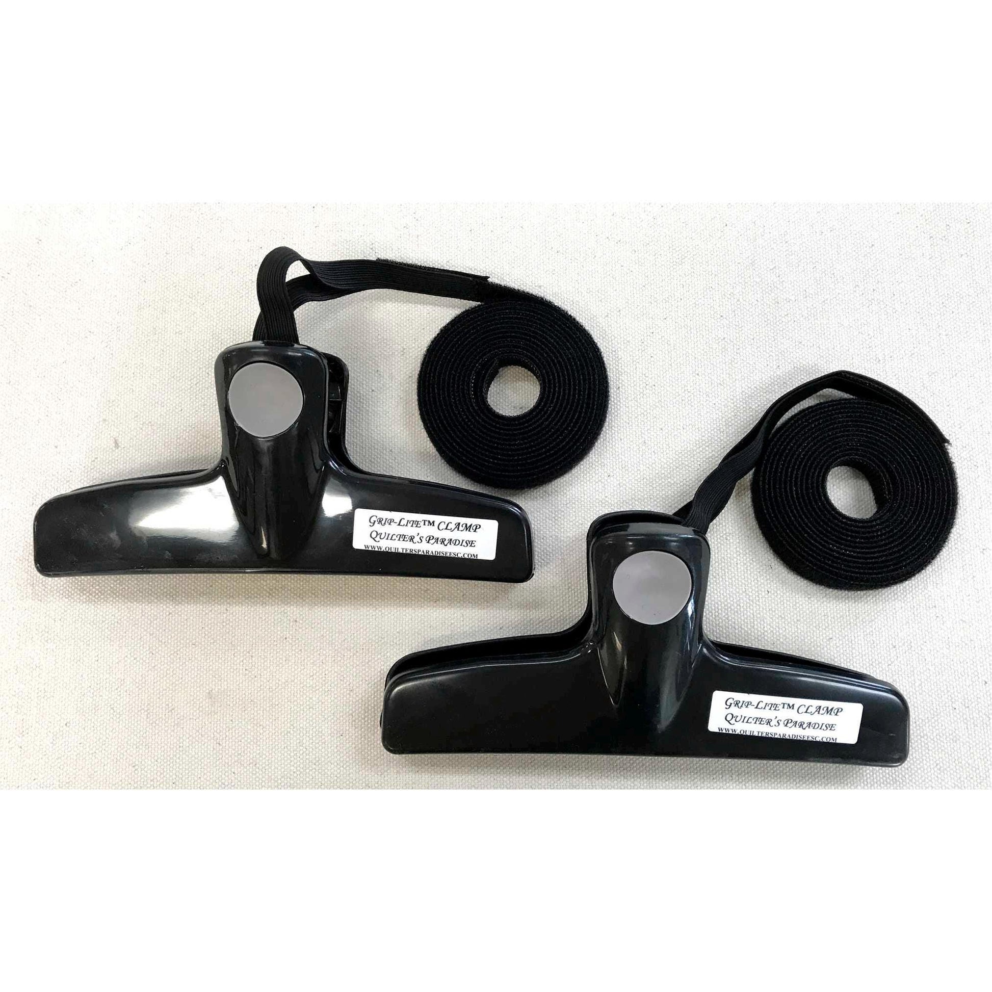 Tired of heavy, hard-to-squeeze and use side clamps for your Longarm / Midarm quilting machine? Or clamps that grip and pull on only an inch or two of the quilt thereby distorting the side of the quilt? No more! The Grip-Lite™ side clamps are super lightweight providing a secure 6-inch grip and easily opened with one hand! Each clamp comes with 6 feet of double-sided Velcro™ and a short elastic strip for fast attachment to the frame.