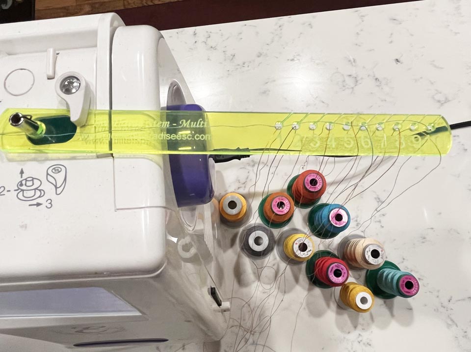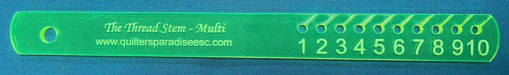 Like its highly popular sibling, The Thread Stem, The Thread Stem - Multi is simple to use: just insert it onto your machine's spool pin and thread it. However, The Thread Stem - Multi supports up to 10 spools and cones at a time! And, it features a fast threading capability via slits cut into the side. If you need to handle more than 10 spools, no problem -
