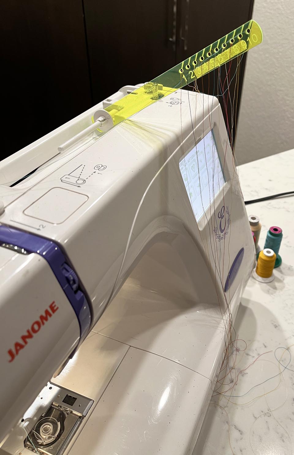 Want to use multiple spools or cones of thread on your home sewing or embroidery machine, but don't want to use a bulky, expensive and non-portable thread stand?